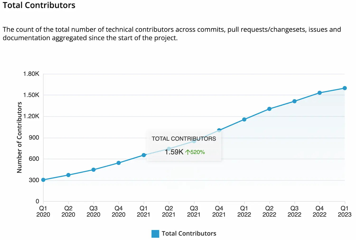 In the last three years, we increased from 301 contributors in Q1 2020 to 1,520 in Q4 2022.