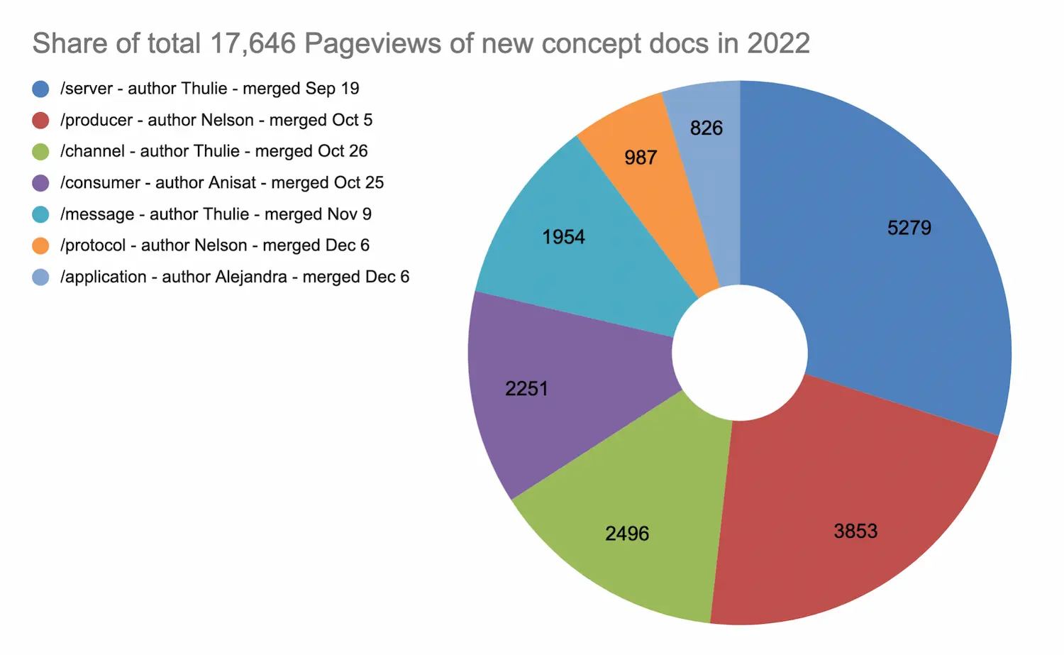 In the case of Generator documentation, Florence and Pratik refactored all the documentation from the Generator repository and made sure it was published in an automated way on the website. It was published on the website on the 20th of December, almost the end of the year during Christmas break, a dead season for the website. Yet the new content managed to generate an additional 1,053 Pageviews to the website!